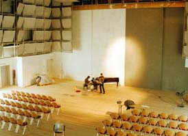 ... wo sich die Gärten des Deutschen Pavillons befinden? Sie finden sie an der Nord- bzw. Südseite des Gebäudes. In den Atrium-artigen Einsprengseln sind - im Rahmen der Länderwochen - Installationen von Künstlern der verschiedenen Bundesländer zu sehen. Die derzeitige Installation heißt "Kunst im Weingarten" und lohnt einen Besuch. |