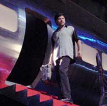 | Goldoni ist Schöpfer der Figuren von "Trilogia della villeggiatura", sie existieren zunächst nur in seinem Bewusstsein, werden dann real, und alles kreist um die bevorstehende Abreise in die Sommerfrische. |  Laslo Lukas als Carlo Goldoni