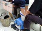 Fußwasch-Aktionen Performance Künstler und Regisseur für