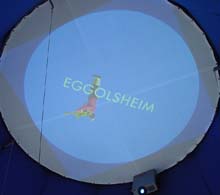 ...treffen Pavillonbesucher im Nordgarten. Sozusagen unter der Hutkrempe ertönt eine Klangcollage aus Musik verschiedener bayerischer Blaskapellen. Wer den Blick nach oben richtet, sieht in der Hutspitze Projektionen aus den Heimatorten der Kapellen... | |
