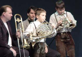 | Letztere verfügen daneben auch über einige "Mini-Solisten", die ihr Instrument nur unwesentlich überragen. |  Unterbiberger Klein-Hornist © Foto: Cord Radke | |