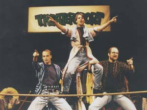 ... heißt es heute abend. Dabei handelt es sich aber nicht etwa um einen Rasen-, sondern um "Theatersport": Das Tübinger Harlekin Theater misst sich mit der Landesbühne Hannover in der Kunst des Improvisierens. Keiner weiß, was so alles passieren wird. Zurufe aus dem Publikum könnten in dem Match für eine entscheidende Wende sorgen. Schaun wir mal. | |