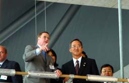 dessen Land heute seinen Nationentag feiert, besuchte heute morgen mit einer Länderdelegation den Deutschen Pavillon und besichtigte die Show. | |