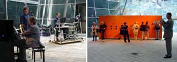 |  Intuitiv am Werk: Das Ensemble für intuitive Musik (links) ohne Trompeter (rechts).