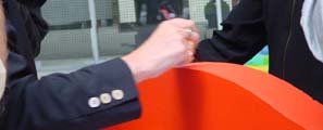 |  Ministerpräsidentin Heide Simonis eröffnete gestern die Länderwoche Schleswig-Holstein und schrieb als erste Teilnehmerin in dem interaktiven Projekt Grüße an ihr Land. © Foto: Elke Frommann |