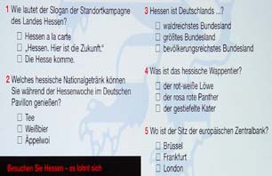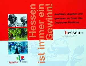 "Hessen ist immer ein Gewinn" lautet das Motto des Gewinnspiels während der Länderwoche Hessens im Deutschen Pavillon.