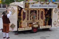 ... erklingt derzeit auf der EXPO-Plaza an der Nordost-Ecke des Deutschen Pavillons - "als beschaulicher Gegenpol zur vollelektronischen High-Tech-Welt". Aus dem sachsen-anhaltischen Thurau angereist ist Dr. Karlheinz Klimt mit seiner 73 Jahre alten "Ruth-Conzertorgel", eine der besten Deutschlands, die eine bewegte Geschichte hinter sich hat: Erst als Wanderkino- und dann als Karussellorgel im Einsatz, landete sie 1999 bei Dr. Klimt, der dafür sorgt, dass ihr die Töne nicht ausgehen: Seine Spielbücher reichen für 8 Stunden, Zugaben nicht mitgerechnet... |