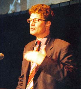 Zum Abschluß der Video-Installation "WELCOME HOME" ( s. 2.10. ) wird der aus Funk und TV bekannte Journalist und Autor Roger Willemsen heute um 20.30 Uhr für eine Talk-Runde zum Thema "Die Deutschen und die Anderen" zu Gast im August-Everding-Saal sein. |  Interviewte schon internationale Prominente, noch bevor die Talkshow-Welle einsetzte: