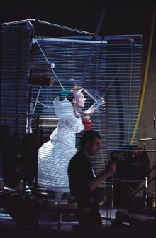 TagNachtTraumstaub hob die konventionelle Trennung zwischen Bühne und Zuschauerraum auf und thematisierte den fraglichen Zustand zwischen Traum und Wachen. Das Stück führte uns an die Grenzen unserer Wahrnehmung, an die Grenzen menschlicher Erkenntnis. Die Komponistin durchforschte das ewig alte, immer neue Labyrinth der Liebe, den Garten der Pfade, die sich verzweigen: Analogie zum menschlichen Leben, in Bild, Klang und Sprache übersetzt. TagNachtTraumstaub folgte dabei keiner klassischen Operndramaturgie. Als musikalisches Poem konzipiert, ist das Stück in sechs VERÄSTELUNGEN und sechs RISSE eingeteilt, eine sogenannte "Grundmusik" webt sie zu einem heterogenen Flechtwerk zusammen. In diesem formalen Arrangement findet die Oper den adäquaten Ausdruck ihrer inhaltlichen Zerrissenheit. Eine faszinierende Welt zwischen Realem und Irrealem, zwischen Verstehen und Unverstand, entfaltete sich im unkonventionellen Raum.